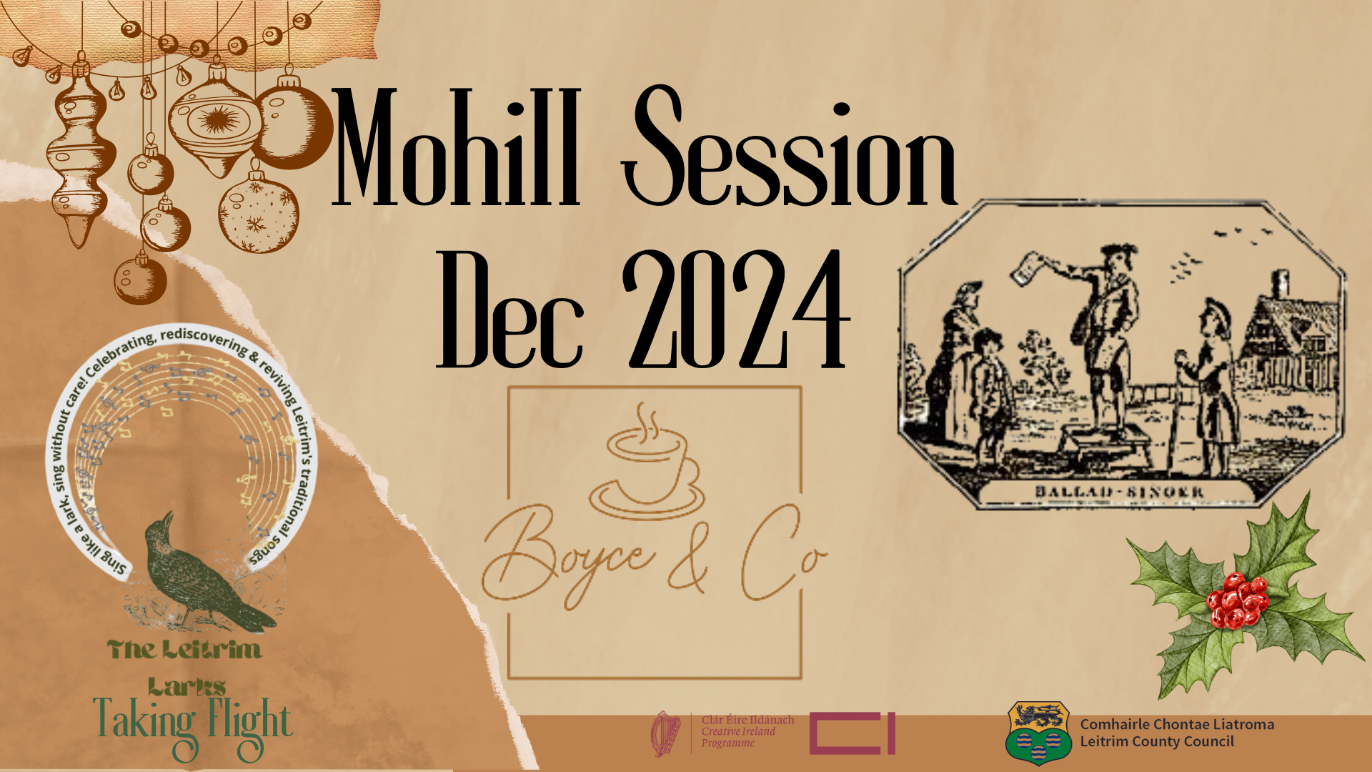 The December 2024 Session was held in Boyce’s Café, Mohill and was a nice mix of children and adults with our guests being the Bornacoola Ballad Group, Nessa Finnerty with a recitation and members of Carrick Trad singers who sang and taught three songs to the group.